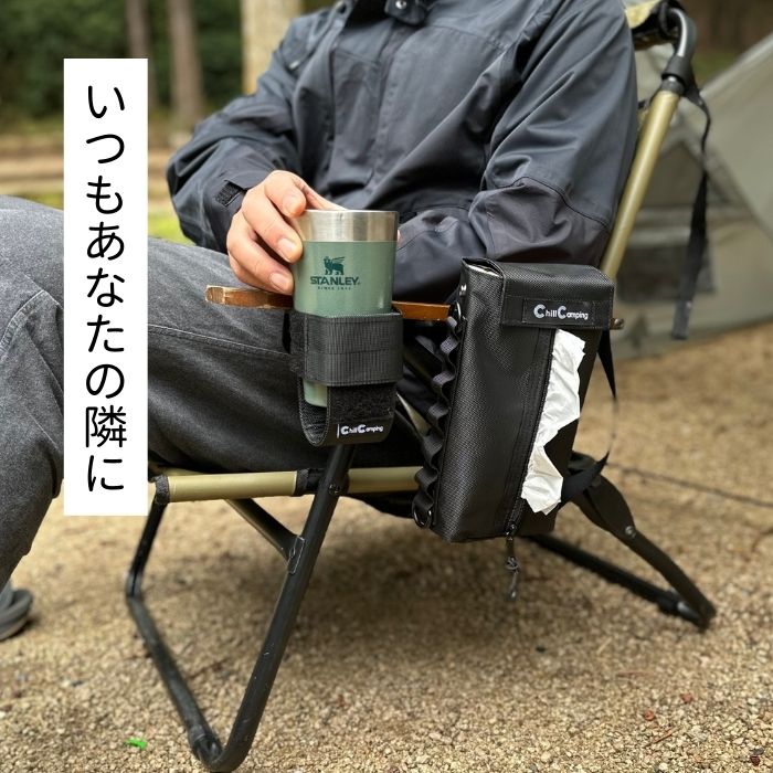 ChillCampingクーラーボックスや収納ボックスにくっつくドリンクホルダー。欲しい時にすぐ手に届く。