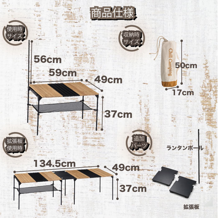 134×49×37cm(拡張板でテーブル2個を連結時)