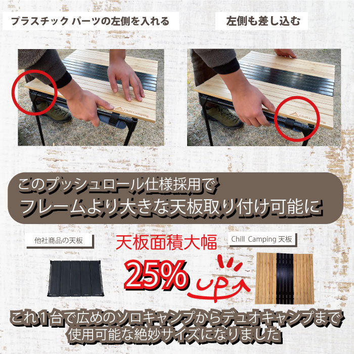 あまりなかったデュオ(二人サイズ)。広めのソロキャンプ としても、拡張板使用でファミリーキャンプとして使用してもOK。圧倒的な天板面積で快適なキャンプライフをお届けします。ロースタイルのアウトドアにぴったりなローテーブル。